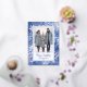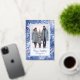 Tarjeta de Navidad elegante impresa con copos de nieve pintados a mano en acuarela, tu foto y el nombre de tu familia. Una forma moderna y elegante de desear Feliz Navidad a tus familiares y amigos.