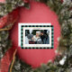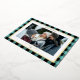 Tarjeta Festiva Con Relieve Metalizado CozyTeal Black Plaid Border 3 Fotos Navidades