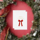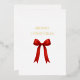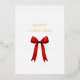 Cuta tarjeta de Navidades de Relieve metalizado con un diseño simple y minimalista con un arco rojo junto con el saludo "Feliz Navidad" en Relieve metalizado real. Utilice la plantilla para agregar su mensaje personalizado.