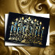 Tarjeta Festiva Con Relieve Metalizado Dibujo de Menorah Hanukkah Gold Blue
