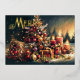 Tarjeta Festiva Con Relieve Metalizado Dibujo de Pastel Duro Navidad Árbol de Fiesta Vela