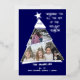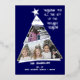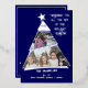 Una tarjeta de Navidades fotográficos verdaderamente única con tu collage de fotos en un elegante árbol asimétrico inclinado con una estrella de topper. Único y creativo, pero que se mantiene en consonancia con la tradición. Es un diseño moderno, limpio y divertido que resalta tus fotos esbozadas en Relieve metalizado real en oro, plata o oro rosa que aparecen en el fondo azul profundo. Agregue dos de sus fotos dentro de la forma de árbol. La parte superior del árbol conmemora el año. La base del árbol ofrece tres líneas de espacio de personalización para nombres familiares y padres, hijos y nombres de mascotas. El mensaje principal es "Deseándote toda la alegría de la temporada de feriados" pero puedes personalizar esto. También hay espacio en el reverso para notas manuscritas adicionales si se desea añadir algunas. Jubilante y elegante, esta tarjeta es una tarjeta de foto clásica con un diseño distintivo y el toque correcto de acentos metálicos.