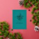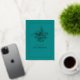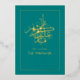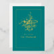 Tarjeta de felicitación de Eid Mubarak con caligrafía azul verdoso y dorado personalizable según tus especificaciones.