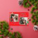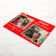 Share your holiday cheer with this vibrant burgundy Christmas design featuring a trendy 2-photo collage and playful candy cane illustrations. The elegant gold sparkle accents and sophisticated typography create a joyful and memorable way to send your love to family and friends.