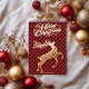 Elegant Gold Foil Reindeer Merry Christmas Card in Burgundy – Luxe Holiday Flat Card with Ornate Script, Red & Gold Classic Christmas Style, 5x7 Personalized Family Greeting
