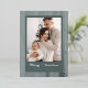 Bring a touch of vintage charm and elegance to your holiday greetings with this beautifully striped photo card. The white background is framed by a sage green vertical pinstripe pattern, all shimmering in crisp silver foil. Your favorite family photo sits above a solid green panel, where the handwritten-style "Merry Christmas" and family details also shine in radiant silver foil for a modern classic look.