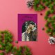 Tarjeta Festiva Con Relieve Metalizado Elegant Script Arch Newlyweds Photo Fuchsia Gold