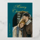 Elegant Script Arch Newlyweds Photo Teal Gold Foil Holiday Card