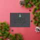 Modern elegant happy holidays Business Logo charcoal gray and gold foil holiday Greeting Card with a stylish Minimalist Watercolor snowy Woodland christmas pine tree with festive lights and whimsical Gold Foil Script