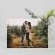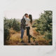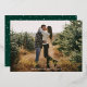 Tarjeta fotográfica navideña moderna con tu foto horizontal con "Feliz Navidad" mostrada en un guión de Relieve metalizado dorado. Personalice la parte delantera de la tarjeta de fotos de Navidad del Relieve metalizado con su nombre familiar y el año. La tarjeta se invierte para mostrar un patrón de nieve verde y blanco.