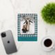Esta tarjeta de vacaciones se destaca por su diseño elegante y único. Cuenta con un saludo atemporal de "Felices Fiestas" impreso en auténtico foil dorado, personalizable según su preferencia, sobre un diseño de cuadros en azul turquesa, blanco y rojo granate. La parte delantera ofrece espacio para el nombre de su familia, foto y saludo estacional personalizado, mientras que la parte trasera es perfecta para agregar un mensaje estacional personalizado o poema. Es una forma elegante de enviar sus deseos de vacaciones.