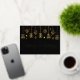 Personalizar tu moda tarjetas de Relieve metalizado de oro de vacaciones corporativas con este elegante guión cursivo de oro bajo una serie de adornos navideños. El diseño ornamental no es Relieve metalizado dorado. La elegante tipografía sobre un fondo negro moderno añade un toque elegante a esta tarjeta de Navidades de negocios personalizado. Personalice con los saludos de su empresa en la parte trasera.