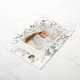 Elegante tarjeta de vacaciones con tu foto vertical enmarcada en blanco con un fondo de nevadas acuáticas, hojaldre, hojas de eucalipto y frondosas hojas de salvia verde. Personalice la parte delantera de la tarjeta de foto botánica de Navidad con un saludo personalizado y su apellido con letras de Relieve metalizado dorado. La tarjeta se invierte para mostrar el mensaje personalizado con letras blancas con un fondo de sabio oscuro.