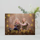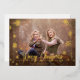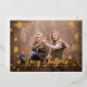Elegante guión de foto única horizontal Tarjeta navideña Feliz. Esta tarjeta tiene un texto de Relieve metalizado real y es completamente personalizable y fácil de personalizar. Perfecto para enviar a amigos y familiares durante las vacaciones. Los copos de nieve también son Relieve metalizado.