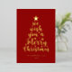 Elegante Guión Red Gold Real Relieve metalizado Una Foto Merry Tarjeta navideña de vacaciones de Relieve metalizado