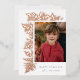 Una elegante tarjeta de Navidad con guirnalda de follaje de ciprés con lámina de rosa dorado. Haga clic en editar para personalizar este diseño.