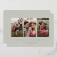 Una elegante y muy mínima tarjeta de fotos de Navidades gris-verde pálido/festividad con texto de personalizable completo en un color de Relieve metalizado de su elección. Simplemente intercambia en tus propias fotos y cambia el nombre o nombres por año. La parte posterior de la tarjeta tiene personalizable (impresión estándar) de texto de plantilla para un mensaje/resumen anual más largo o sube otra foto si lo desea. El diseño está disponible en otros colores, tamaños y formas de mi tienda.