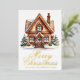 Esta tarjeta de Navidades de esta encantadora empresa personalizado tiene su inmueble personalizado u otro nombre de negocios y el mensaje Happy Holidays en la tipografía de Relieve metalizado de oro de moda junto con una hermosa imagen de una casa en invierno rodeada de pinos. Tarjetas de vacaciones profesionales para mercadeo inmobiliario.