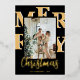 Tarjeta Festiva Con Relieve Metalizado Elegante Moderno 2 Fotos Merry Christmas Script