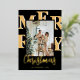 Elegante tarjeta de vacaciones de Relieve metalizado moderno de 2 fotos con escritura navideña.