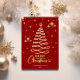 ¡Añade brillo a la temporada con esta tarjeta de Navidades rojos y dorados! El árbol al estilo de las cintas y las estrellas doradas crean un resplandor festivo, mientras que la parte trasera te permite mostrar la foto de tu familia. Una manera alegre de enviar cálidos deseos y mantener brillantes las tradiciones de vacaciones.