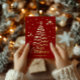 Tarjeta Festiva Con Relieve Metalizado Elegante Navidad de cinta de oro rojo