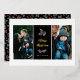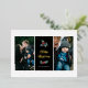 Estas elegantes tarjetas de Navidad cuentan con dos plantillas de fotos y un centro de bloques de color (se muestra en negro - el color se puede personalizar, si se desea). Los elementos de diseño incluyen la lectura de tipografía moderna, "Feliz Navidad" en Relieve metalizado real (elija oro, oro rosa o plata), junto con dos bayas y arreglos de hojas. Un contorno rectangular de Relieve metalizado agrega un toque de clase. La parte posterior de la tarjeta contiene un patrón de bayas huecas sobre un fondo negro.