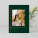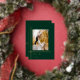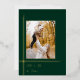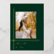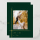 Haga una declaración de vacaciones subestimada pero impactante con esta elegante y moderna versión de estilo art déco con líneas de Relieve metalizado de oro fino de moda alrededor de una sola plantilla de fotos de aspecto de retrato con un fondo verde cazador profundo y una fuente complementaria de Relieve metalizado dorado. La parte posterior incluye una plantilla de fotografía cuadrada adicional, borde dorado y campos de texto.