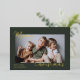 Envía cálidos deseos navideños con esta sofisticada tarjeta de Navidad que presenta tu foto favorita como centro de atención. Contra un fondo verde oscuro rico, la frase "Feliz Navidad" se muestra elegantemente en lámina dorada brillante, añadiendo un toque lujoso y festivo. Perfecta para mostrar un recuerdo preciado mientras se difunde alegría navideña.