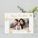¡Feliz Hanukkah! Envíe cálidos deseos a la familia y amigo con esta tarjeta de Relieve metalizado dorado Hanukkah. Cuenta con copos de nieve extravagantes y caligrafía moderna. Personalice esta foto de la tarjeta Hanukkah añadiendo sus propios detalles. Esta tarjeta de fotos de los copos de nieve de Hanukkah está disponible en otros colores y cartón.