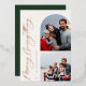 Merry Everything, arco y marco cuadrado 2 foto tarjeta de vacaciones Relieve metalizado. Características, respaldo de color verde sólido.