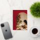El diseño presenta Felices Fiestas en un script de caligrafía de pan de oro sobre un fondo rojo intenso festivo. Personalice fácilmente sus detalles personales junto con sus fotos en la parte frontal y posterior. Una hermosa tarjeta y recuerdo para familiares y amigos en esta temporada navideña.