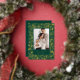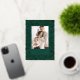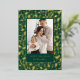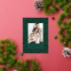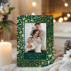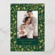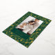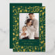 Abraza el encanto clásico de las fiestas con esta elegante tarjeta de foto, que presenta un vibrante diseño de acebo y bayas. El rico fondo verde bosque está bellamente adornado con un patrón brillante de hojas de acebo y bayas, todo representado en lámina de oro brillante. Tu foto familiar favorita está enmarcada por un borde verde sólido, con "Felices Fiestas" y el nombre de tu familia también brillando en lujosa lámina de oro, creando una impresión verdaderamente festiva y atemporal.
