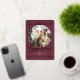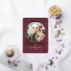 Upload your family photo, enter your family name (like "The Anderson Family"), and add the year. Your photo appears in the elegant circular bow-topped frame on the front. The sophisticated burgundy and gold design, modern script typography, and coordinating tree pattern back are already part of the beautiful layout.