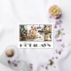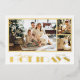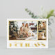 Bordes de lámina de oro real enmarcan tus tres fotos favoritas y las palabras Felices Fiestas en letras de lámina de oro elegante en la parte delantera de estas tarjetas de felicitación de Navidad y tu mensaje y nombres en la parte trasera. Asegúrate de verificar tu pedido antes de agregarlo al carrito, ya que lo que ves en la pantalla es lo que se imprimirá. El Servicio de Diseño en Vivo puede ayudarte con el diseño de tu tarjeta si es necesario.