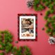 Tarjeta Festiva Con Relieve Metalizado Felices fiestas Red Plaid Tartan Photo Navidades
