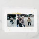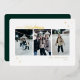 Modern Happy Holidays Relieve metalizado dorado Typography, 3 foto tarjeta de vacaciones. Características, estrellas de Relieve metalizado dorado y respaldo de color verde sólido con espacio de plantilla para su mensaje personal de vacaciones.
