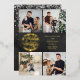 Un elegante diseño de vacaciones de color oro real de Relieve metalizado 4 fotos para personalizar con tus fotos, mensajes, nombres y año favoritos en un fondo de pizarra. El reverso presenta copos de nieve cayendo sobre un fondo de pizarra coincidente. Diseñado por Thisisnotme©