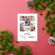 Tarjeta moderna de felicitación navideña con foil dorado, ciervo y árbol en collage fotográfico navideño. El texto "Feliciz Navidad" en estilo de caligrafía, ciervo y árbol en foil dorado y un collage con nueve fotos familiares adornan esta tarjeta. La parte trasera incluye un patrón de ciervos y árboles en blanco sobre dorado. Fotografía © Storytree Studios, Stanford, CA0