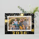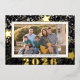 Esta tarjeta de foto de Año Nuevo de papel de aluminio presenta un fondo de confeti de estrellas doradas y plateadas y está acentuada con varias estrellas de papel de aluminio y el año. Personalice esta elegante tarjeta de felicitación con su foto favorita. Fotografía © Storytree Studios, Stanford, CA