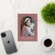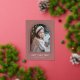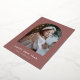 Tarjeta fotográfica de vacaciones moderna con tu foto vertical enclavada dentro de un marco de arco malva con un borde de Relieve metalizado de oro rosa. La frase "Feliz Año Nuevo" y el nombre de su familia se muestran con letras blancas. La carta de Año Nuevo Relieve metalizado se retorna a un patrón de nieve blanca simple.