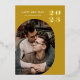 Moderna tarjeta de felicitación de fotos de color ocre amarillo dorado 2023 de Año Nuevo con Relieve metalizado de oro real, un marco geométrico redondeado para la imagen de su elección y un patrón geométrico moderno en la parte posterior. Todos los colores de fondo -frontal y posterior- pueden cambiarse si lo desea.