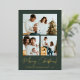 Tarjeta Festiva Con Relieve Metalizado Feliz caligrafía navideña foto verde moderno