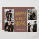 Tarjeta Festiva Con Relieve Metalizado Feliz Collage de fotos de Año Nuevo