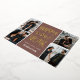 La carta de fotos de vacaciones rústica y festiva incluye cuatro fotos en un diseño de collage, con "Feliz Año Nuevo" en tipografía con letras de mano de Relieve metalizado dorado en un oscuro fondo de terracota. Personaliza con tus nombres debajo.