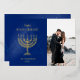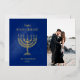 Feliz Hanukkah Tarjeta de vacaciones con foto de la Estrella de David Menorá con foil real