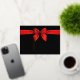 Tarjeta Festiva Con Relieve Metalizado Feliz Navidad, cinta roja