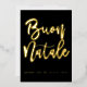 Feliz Navidad, Felicidades por un feliz 2023, Tarjeta de Navidad italiana, Elegante escritura en negro y dorado, Tarjeta de papel de oro real