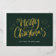 Tarjeta Festiva Con Relieve Metalizado Feliz Navidad Green Gold Calligraphy Non Photo