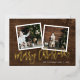 Un personalizado asequible imprimió tarjetas de foto navideñas con plantillas sencillas para la personalización. Este diseño rústico de moda presenta una plantilla de 2 fotos con texto de Relieve metalizado dorado real sobre un fondo de madera. Personalízalo con tus fotos, tu apellido, el año u otro texto personalizado. El lado inverso tiene espacio para fotos y texto adicionales. Utilice las herramientas de diseño para cambiar los tipos de letra y los colores del texto, añadir más fotos y crear una única tarjeta de fotos navideña.